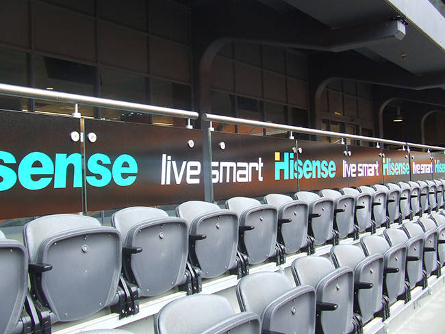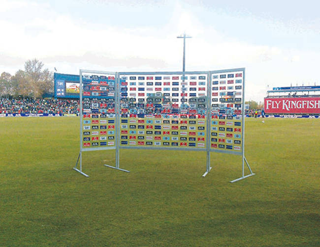 • Perimeter Hoarding Boards: Rigid, permanent, or semi-permanent Chromadek and vinyl boards for the stadium boundary.