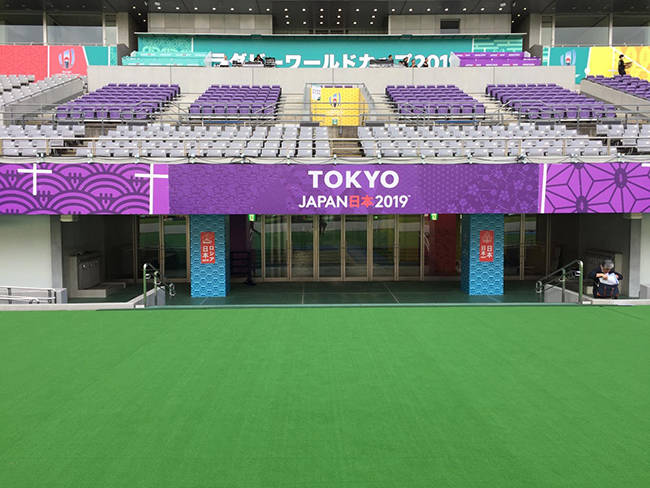 • Grandstand & Tier Branding: Massive tension fabric banners and seat covers that transform empty sections into massive billboards.